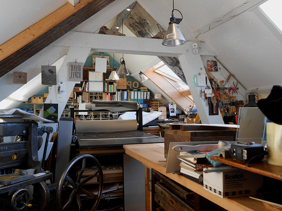 • Imprimerie d’arts intégrée au studio : impression Offset plano, letterpress, lithographie, gravure, …/ beaux-arts.